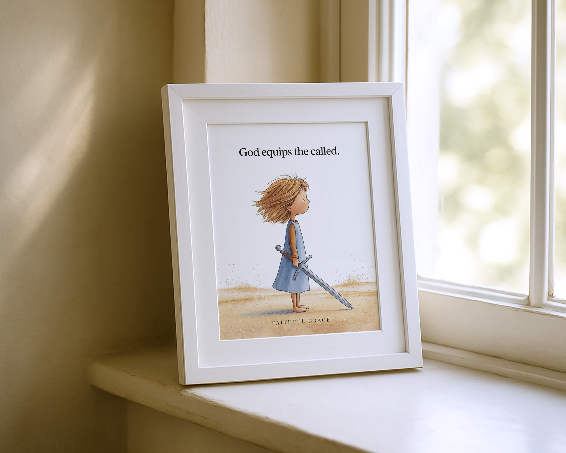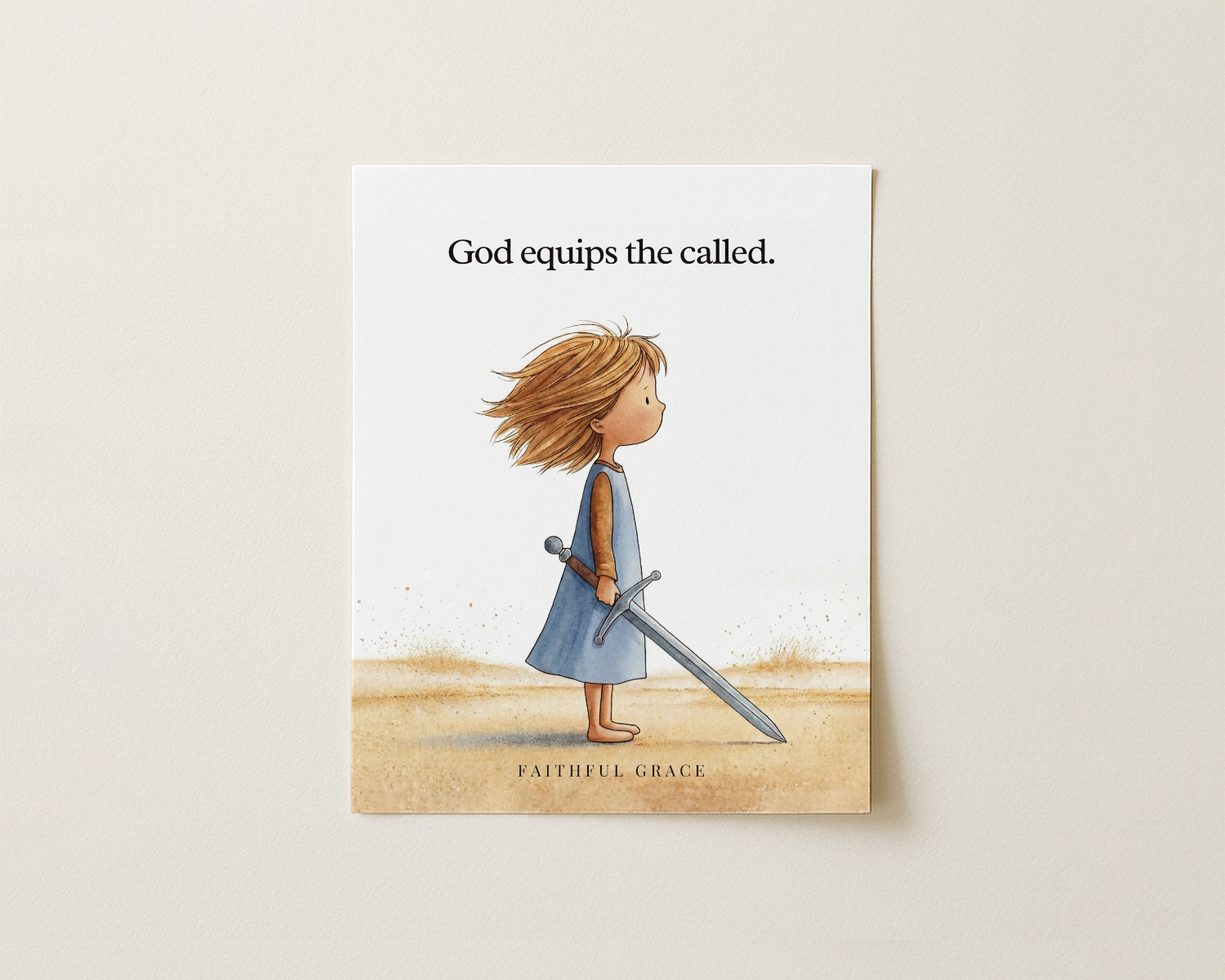 This print belongs in spaces where purpose is being wrestled with. A room where a new season is beginning. A desk where decisions about the future are made. Somewhere it can be seen when the call feels too large and the self too small, as a reminder that the equipping always follows the calling.